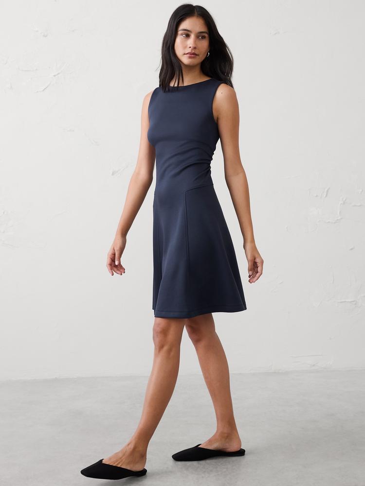 SOFT TOUCH SHIRRED-WAIST KNEE-LENGTH DRESS