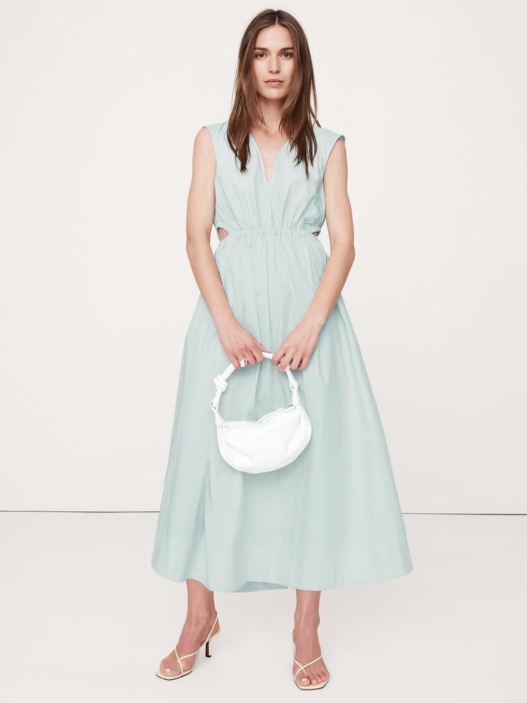 COTTON POPLIN SIDE CUT-OUT MIDI DRESS
