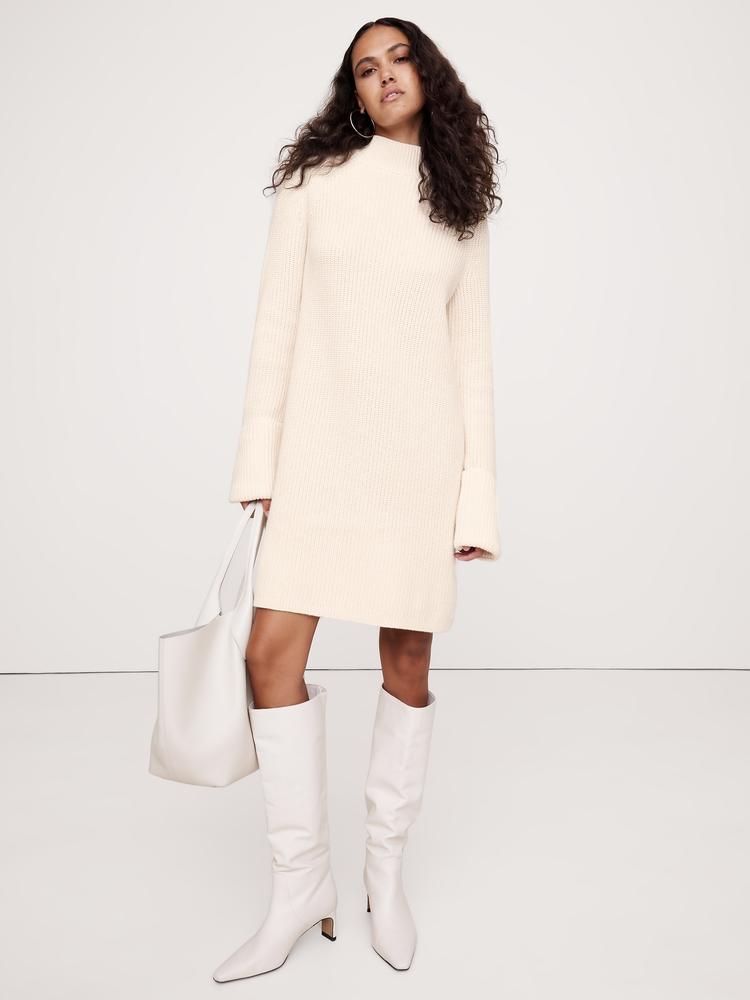 COTTON-WOOL MOCK-NECK MINI SWEATER DRESS