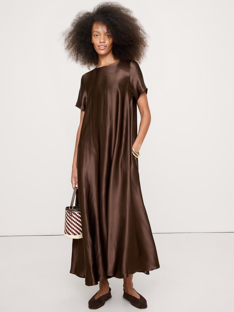 ITALIAN SATIN TRAPEZE MAXI DRESS