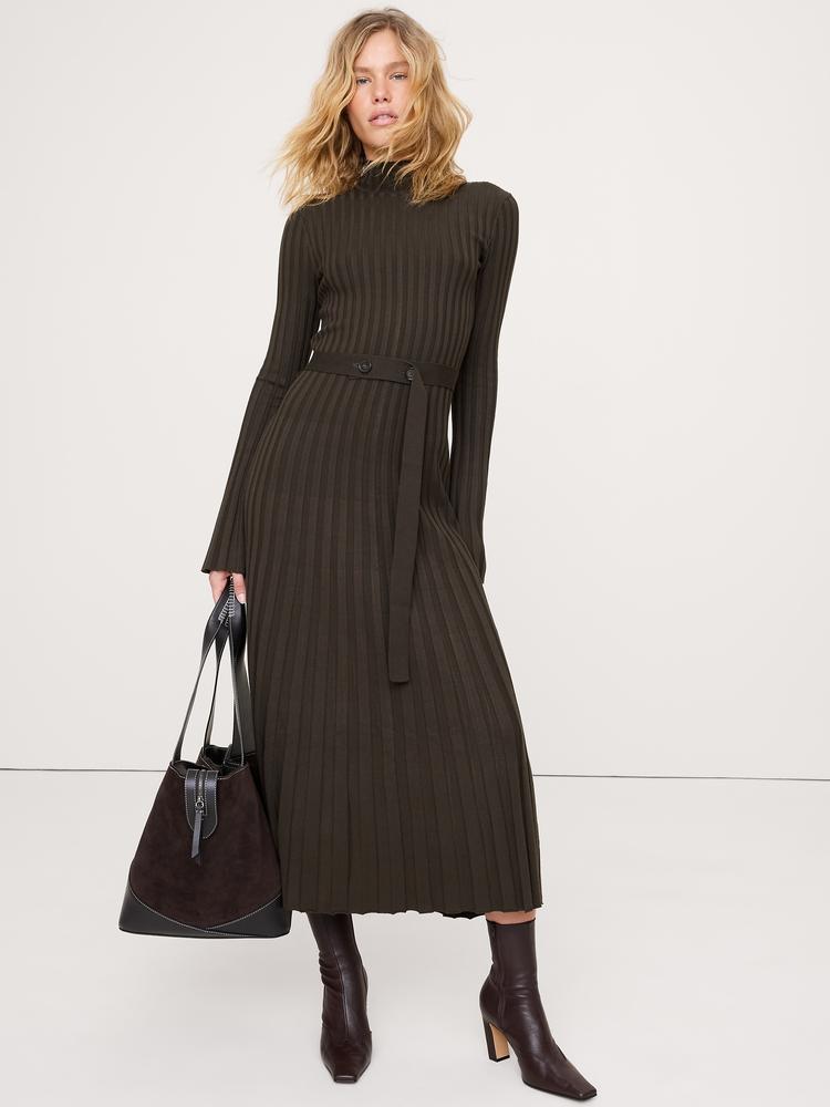 SCULPTED RIBBED SWEATER MAXI DRESS