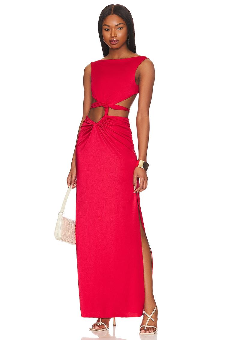 Sleek and sultry, this red column maxi dress features a flattering bodycon fit that contours the figure with comfortable stretch from its nylon and elastane blend. The sleeveless design with wide straps and a classic round neckline balances the bold cut-out details at the waist and an open back for a modern, sexy vibe. A thigh-high side slit adds a hint of drama and ease of movement, making it an ideal choice for summer date nights, cocktail parties, or evenings out. Pull-on styling ensures effortless wear while maintaining a polished silhouette.