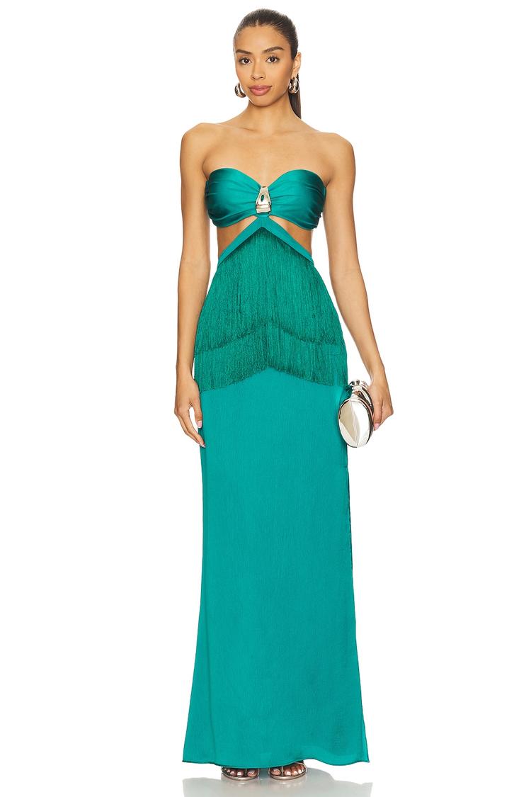 metallic fringe detail gown