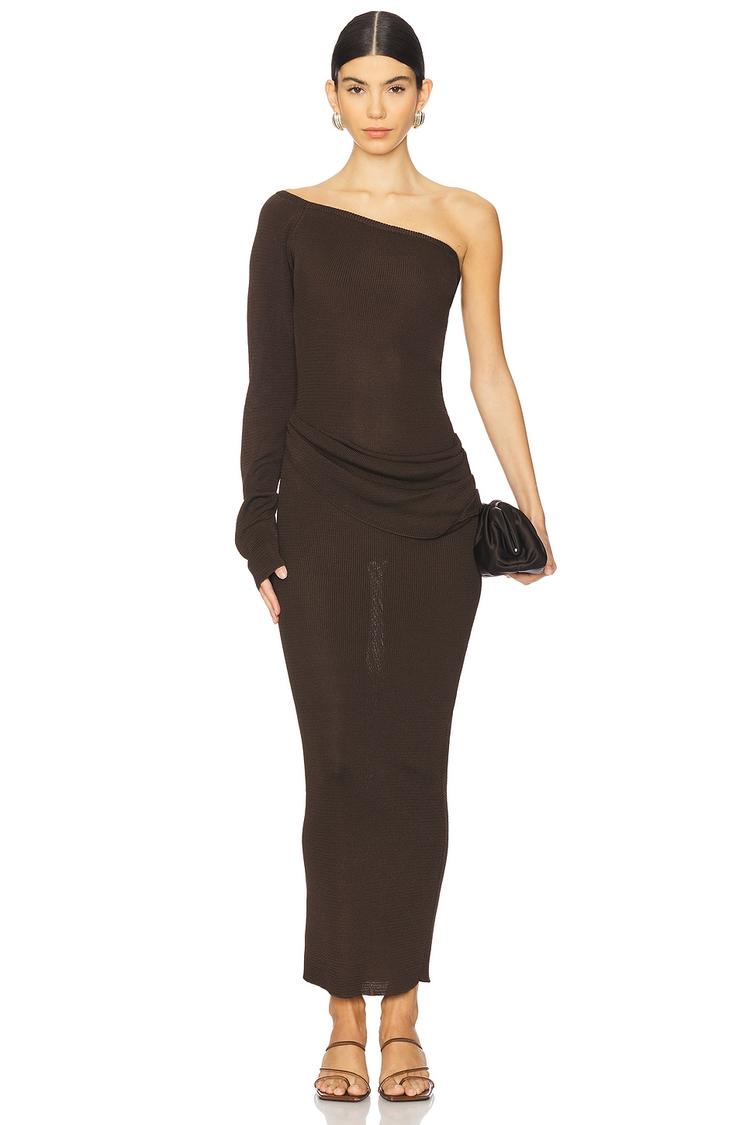 This elegant sheath dress showcases a striking asymmetric neckline paired with long sleeves, crafted from heavyweight knit nylon fabric that offers warmth and comfort for autumn and winter evenings. The maxi length and fitted silhouette emphasize a sophisticated, modern vibe, while the draped fabric overlay at the waist adds a subtle yet refined design detail. Ideal for cocktail parties, date nights, or night outs, this pull-on style with clean hemline and partial lining balances ease with elegance effortlessly.