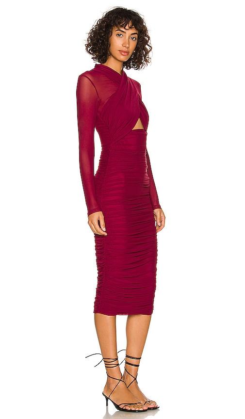 BARDOT ALIYAH DRESS IN BURGUNDY.