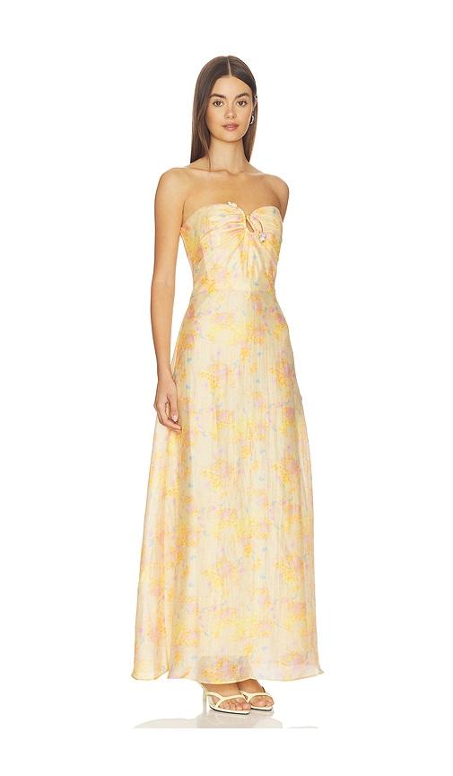 BARDOT AMINA STRAPLESS MAXI DRESS IN LEMON.