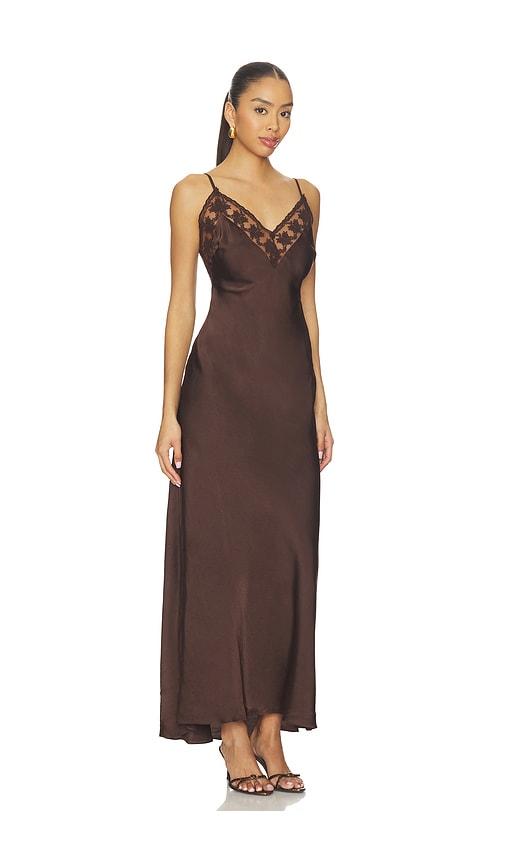 BARDOT BONITA LACE TRIM MAXI DRESS IN CHOCOLATE.