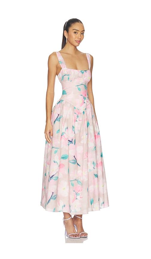 BARDOT CARTIA PRINTED MIDI DRESS IN PINK.