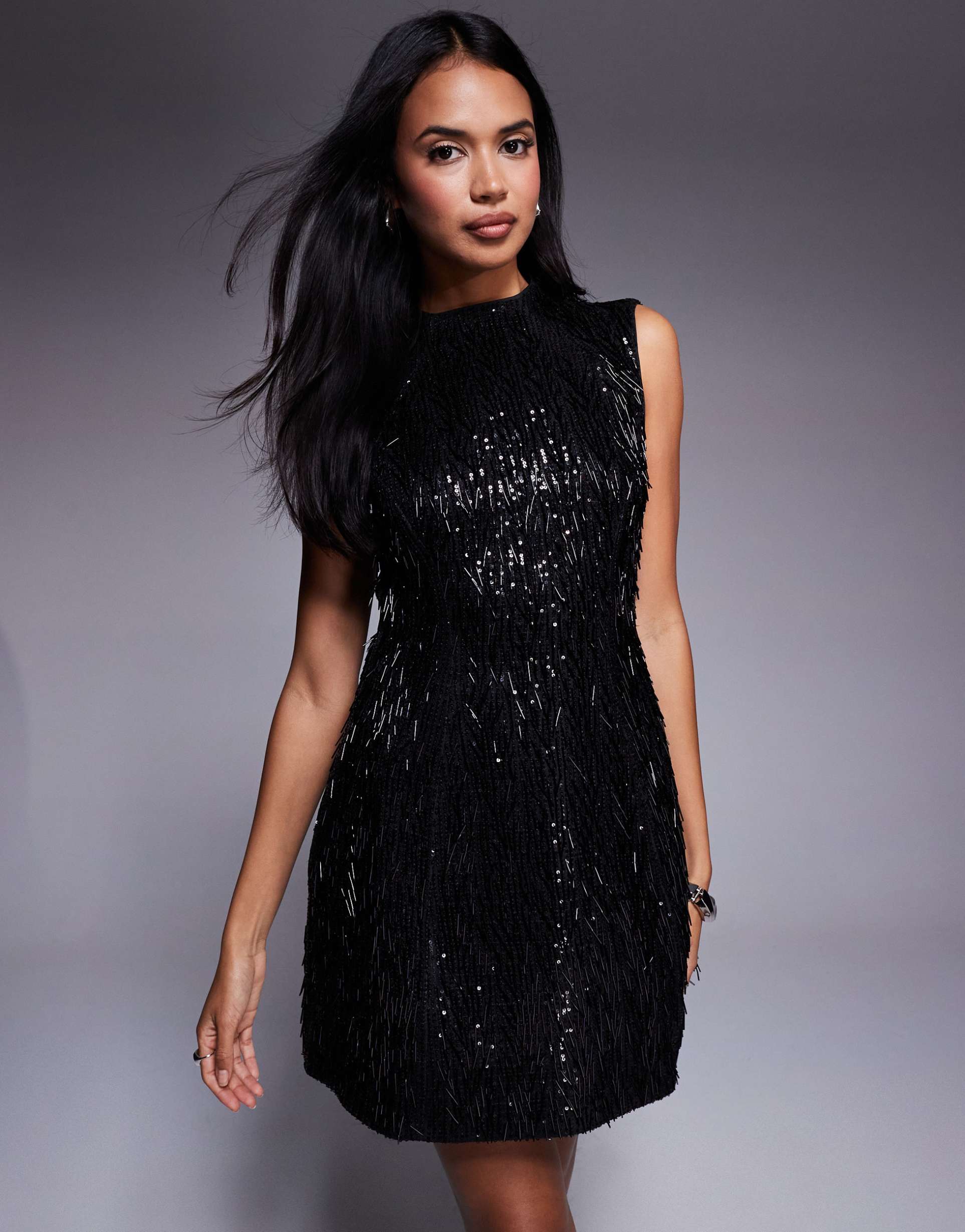 BARDOT CHRISTINA MINI SEQUIN DRESS IN BLACK