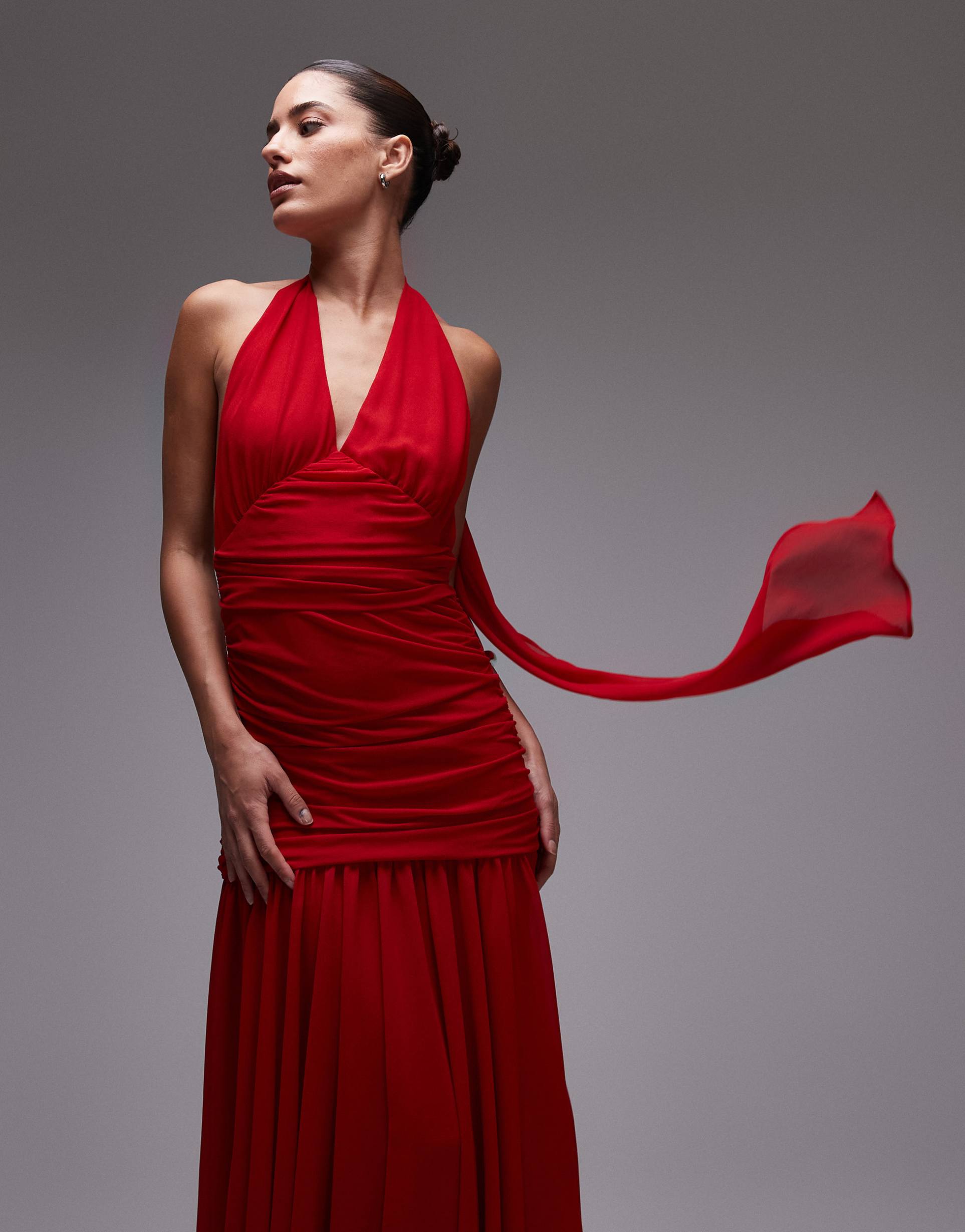 red halter neck maxi dress