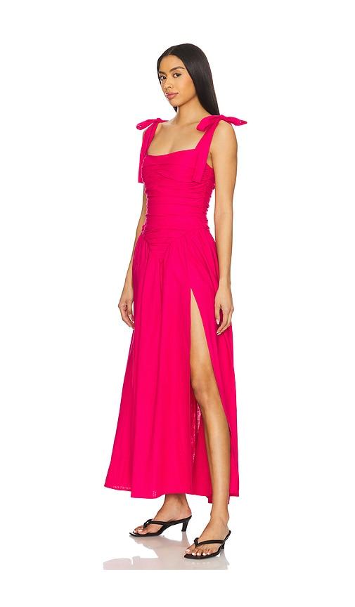 BARDOT MIRELLE LINEN MAXI DRESS IN FUCHSIA.