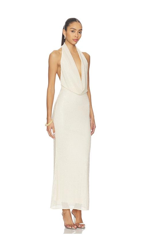 BARDOT NOLA SEQUIN COWL MAXI DRESS IN IVORY.