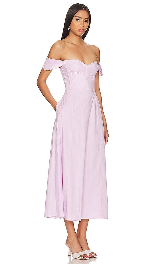 BARDOT X REVOLVE MAGDELENA MIDI DRESS IN LAVENDER.