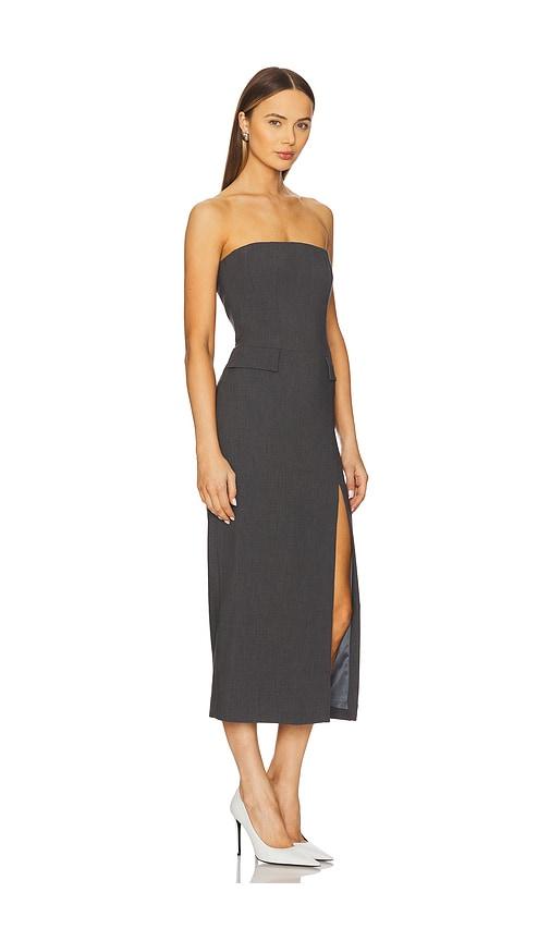 BARDOT X REVOLVE NIKKI STRAPLESS MIDI DRESS IN CHARCOAL.