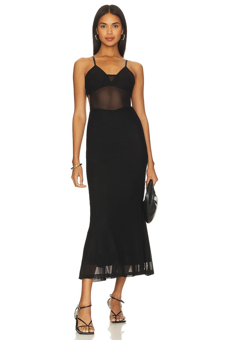 Sleek and alluring, this matte black slip dress features a bodycon fit and midi length that flatters every curve. The V-neckline and delicate spaghetti straps enhance its modern, sexy vibe, while mesh panels at the bodice and hem add a subtle edge and breathability. Partially lined for comfort, the dress fastens with a hidden back zipper and hook closure, ensuring a smooth silhouette. Ideal for date nights, cocktail parties, or stylish evenings out, this chic piece blends elegance with contemporary design, making it a versatile addition for spring through autumn wardrobes.