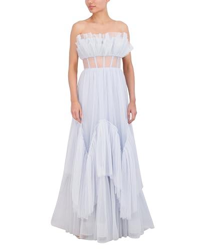 BCBGMAXAZRIA WOMENS STRAPLESS SWEETHEART NECK EVENING MAXI WITH TIERED RUFFLE SKIRT DRESS, XENON BLUE, 4 US