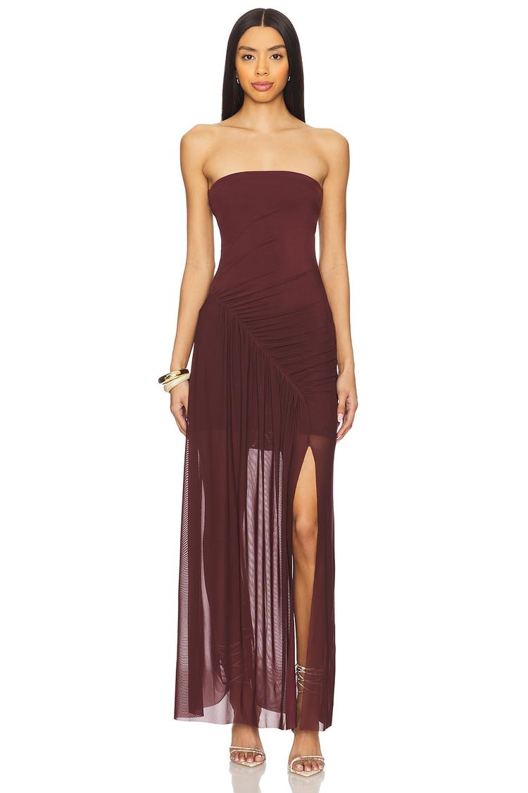 Ruched mesh fabric and a sleek strapless neckline define this elegant burgundy maxi slip dress. The bodycon fit accentuates curves, while a daring side slit adds a hint of allure. Perfect for cocktail parties, date nights, or sophisticated evening events, it combines modern design with comfortable pull-on styling. The partially lined construction ensures a smooth silhouette, making it a versatile choice for all weather seasons.