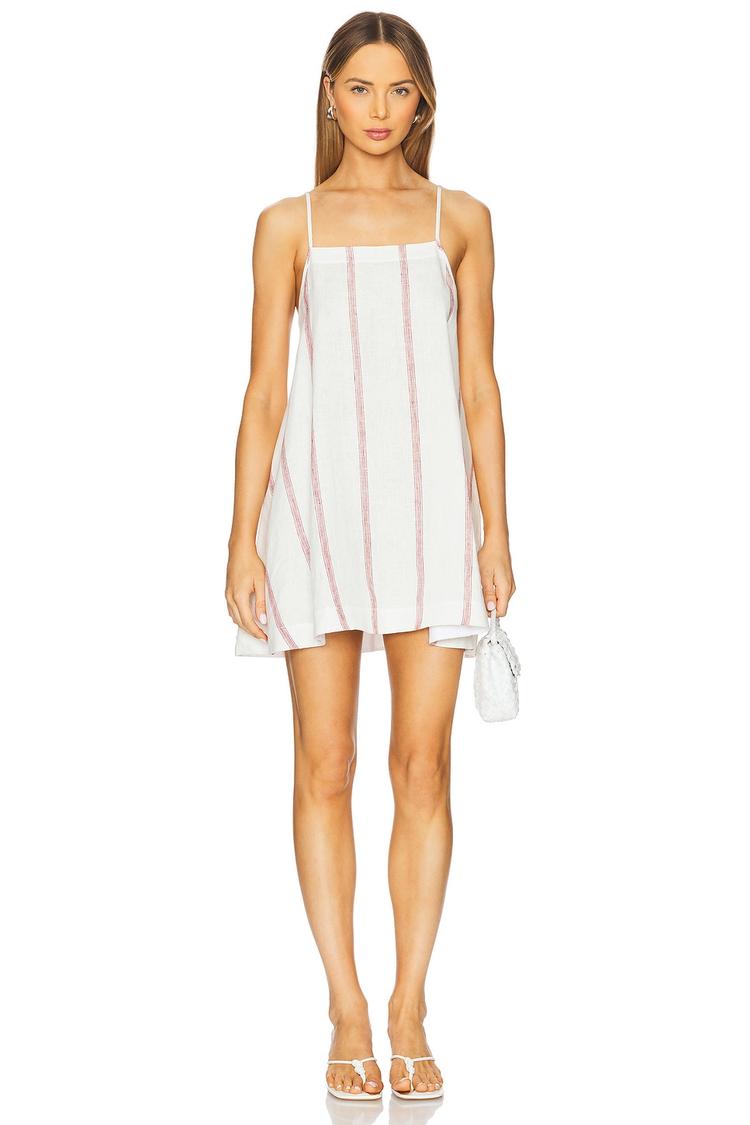 Lightweight linen and a loose, shift silhouette define this airy mini dress, ideal for warm weather. The straight neckline and adjustable spaghetti straps offer easy styling, while subtle red stripes add casual chic appeal. Side seam pockets enhance functionality without compromising the clean hemline. Perfect for spring and summer days, it suits casual outings, beach vacations, or relaxed brunches with friends. The semi-sheer fabric lends a breezy, effortless vibe, making it a versatile addition to your warm-weather wardrobe.