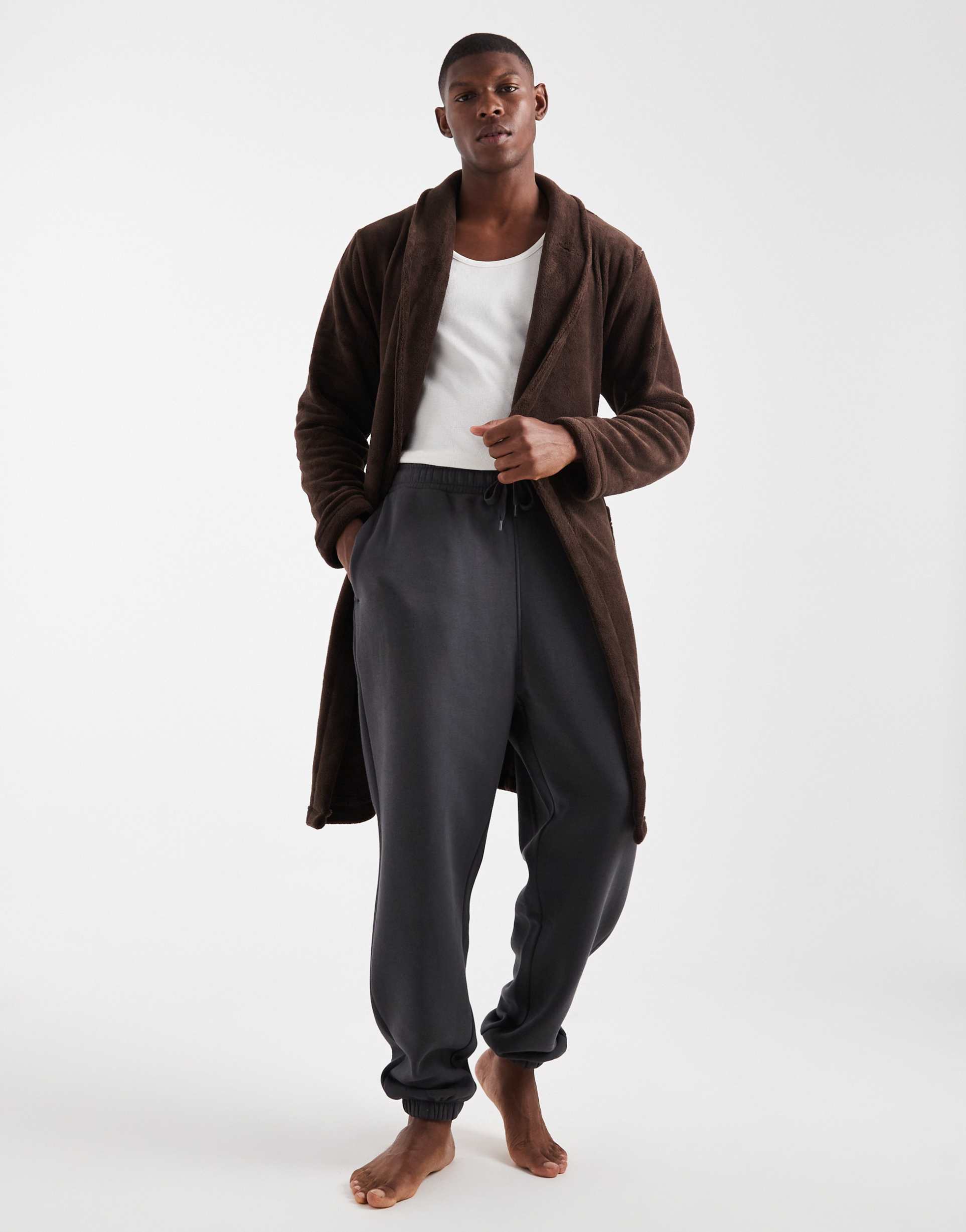 Wrap yourself in cozy luxury with Brave Soul’s fluffy brown robe. Crafted from a soft fleece jersey with a fuzzy surface and a 100% polyester body, this piece feels like a warm embrace. The shawl collar drapes softly around the neck, while a tie-up closure lets you cinch in for a snug, flattering silhouette. The relaxed, midi-length with long regular sleeves offers instant comfort and easy layering. Perfect for lazy mornings, post-bath lounging, or travel days, it pairs effortlessly with sleepwear or casual loungewear for chic, at-home ease.