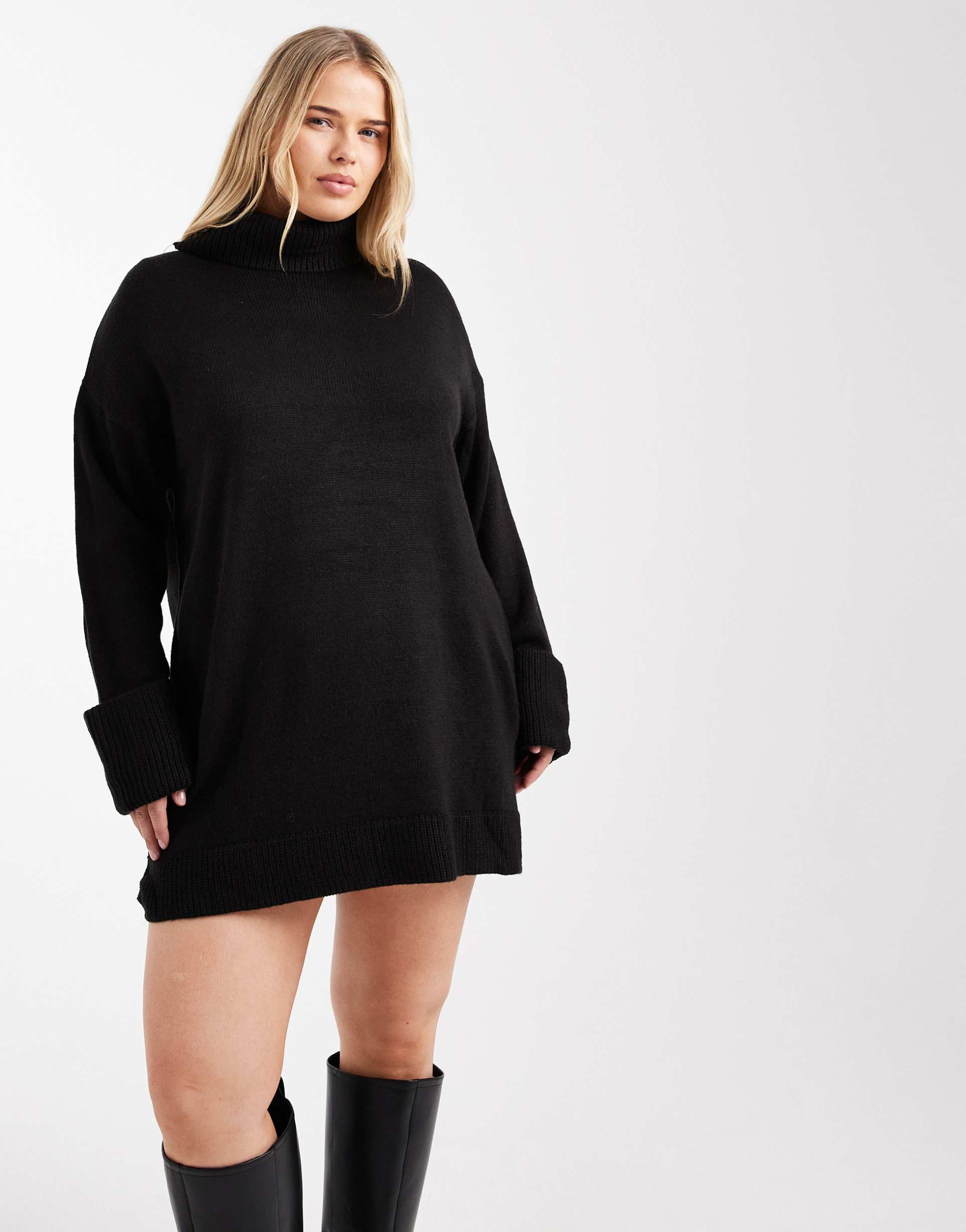 BRAVE SOUL PLUS HIGH NECK KNIT SWEATER DRESS IN BLACK