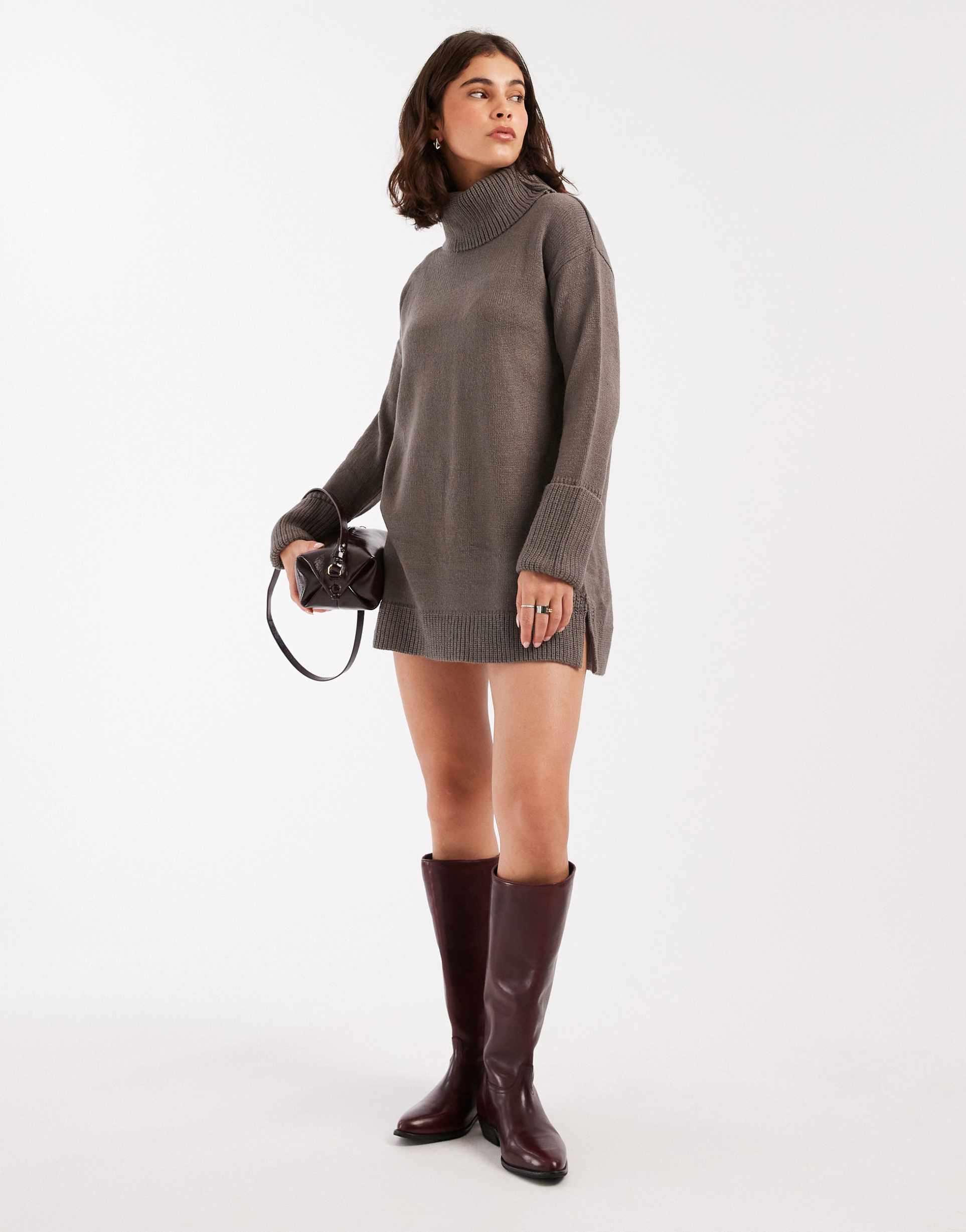 BRAVE SOUL ROLL NECK MINI SWEATER DRESS IN CHARCOAL GRAY