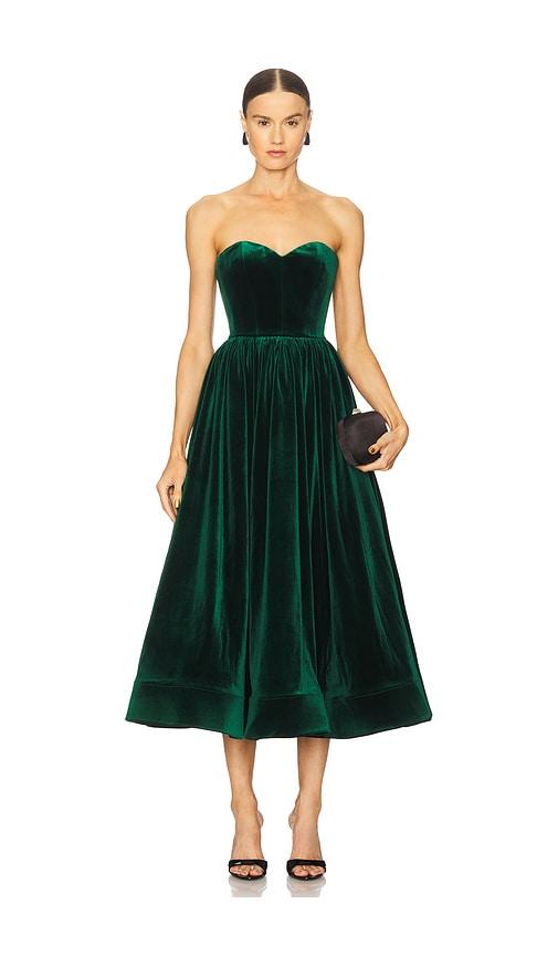 BRONX AND BANCO INARA VELVET MIDI DRESS IN DARK GREEN.