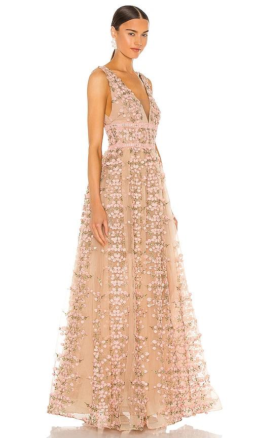 BRONX AND BANCO MEGAN MAXI DRESS IN NUDE,PINK.