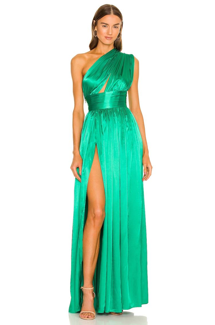 green satin evening gown