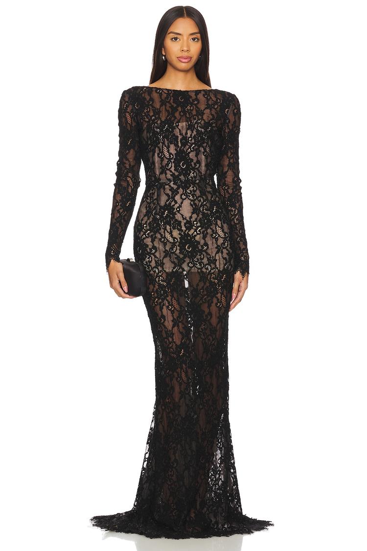 black lace evening gown
