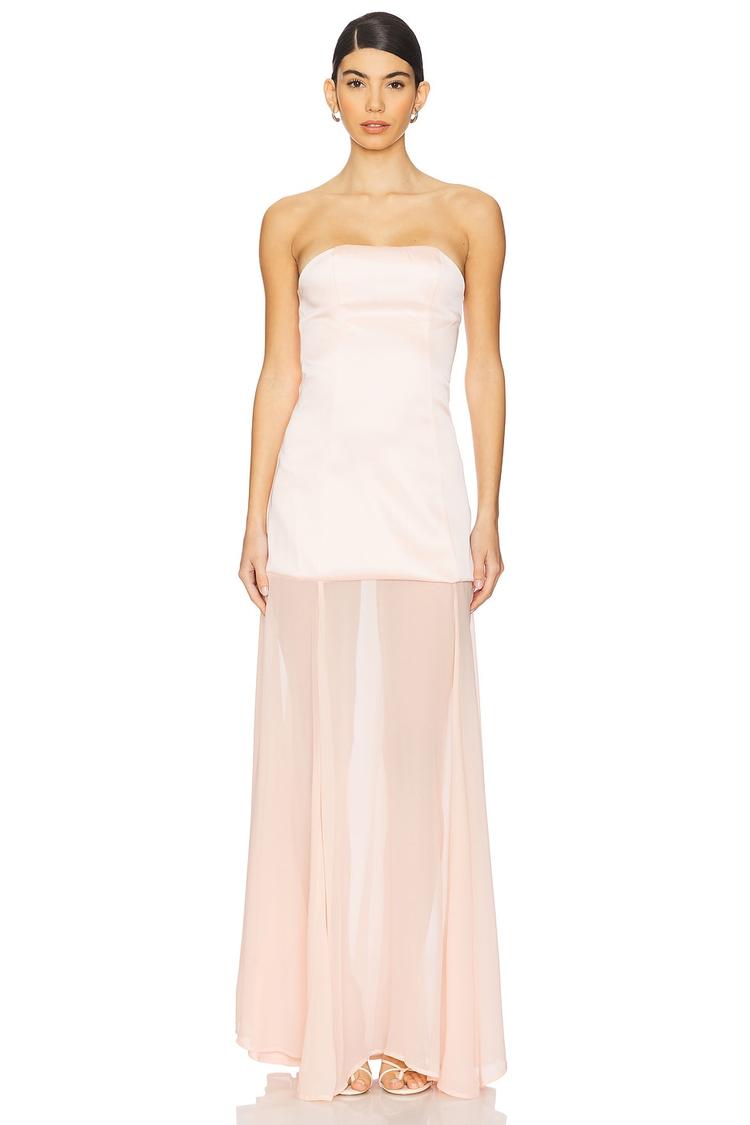 Soft blush satin fabric and a fitted sheath silhouette define this elegant maxi gown with a straight strapless neckline and sleeveless styling. The clean hemline and concealed back zipper provide seamless sophistication, while the non-stick silicone grip trim ensures a secure fit. Perfect for formal events, cocktail parties, or wedding guests, this midweight polyester gown offers a flattering fit that transitions beautifully across spring and summer seasons. Its partially lined construction enhances comfort without compromising the sleek, modern aesthetic.
