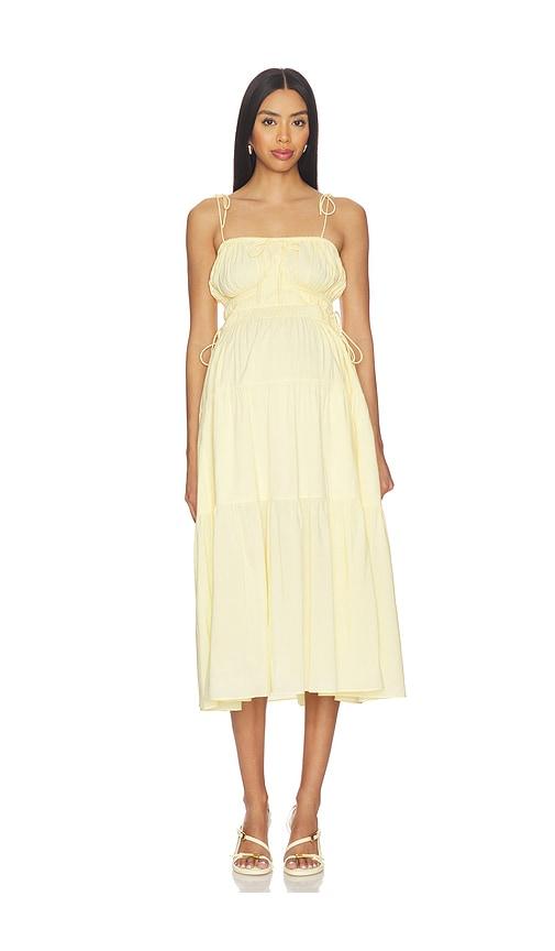 BUMPSUIT SHIRRED MIDI POPLIN DRESS IN YELLOW.