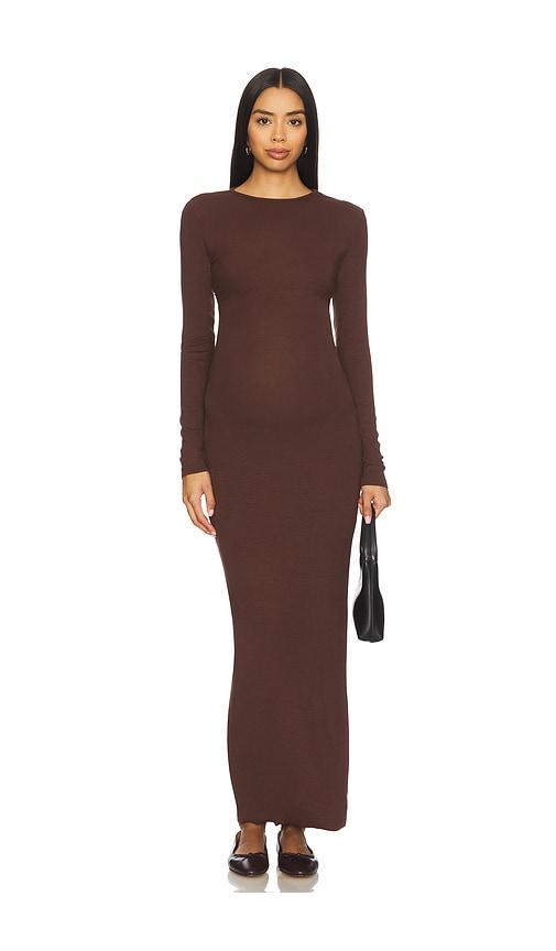 BUMPSUIT SOFT RIB MAXI DRESS IN CHOCOLATE.