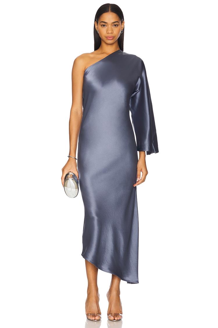 one-shoulder midi dress