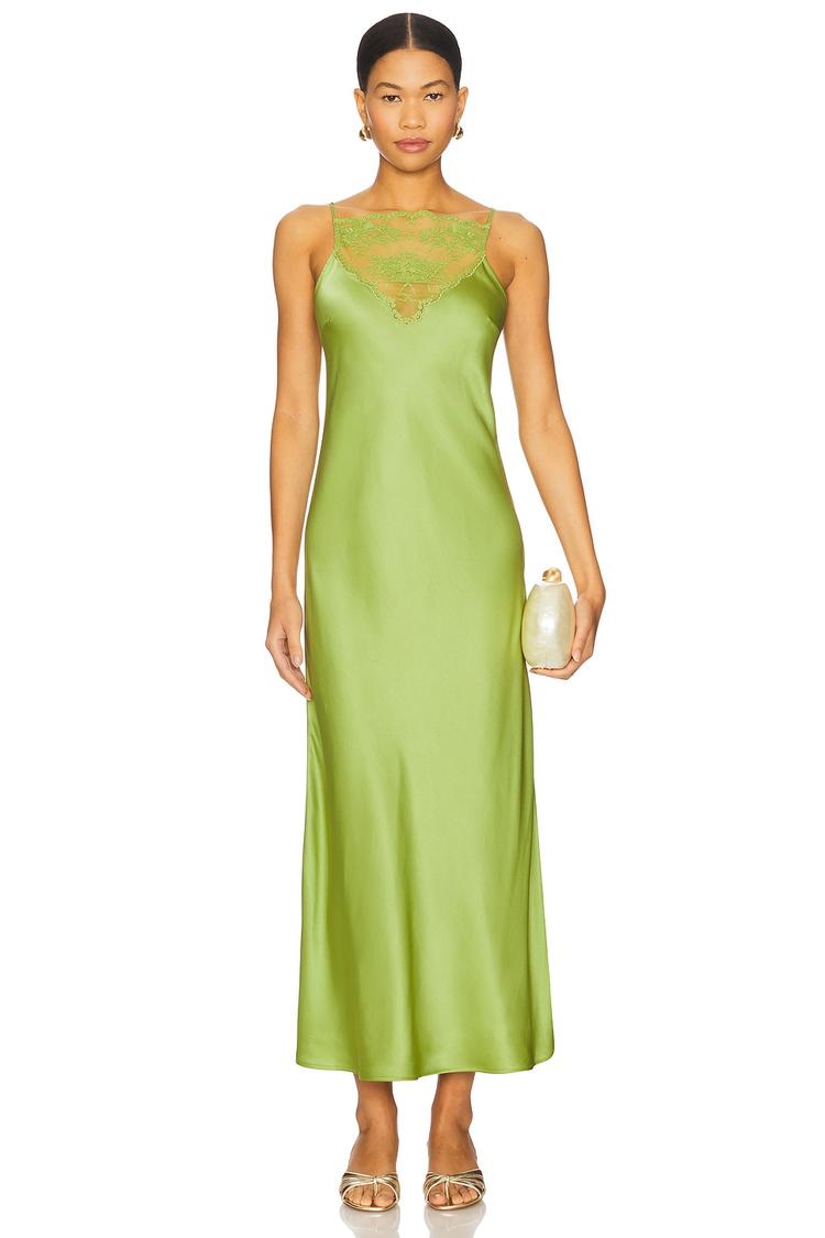 green satin slip dress