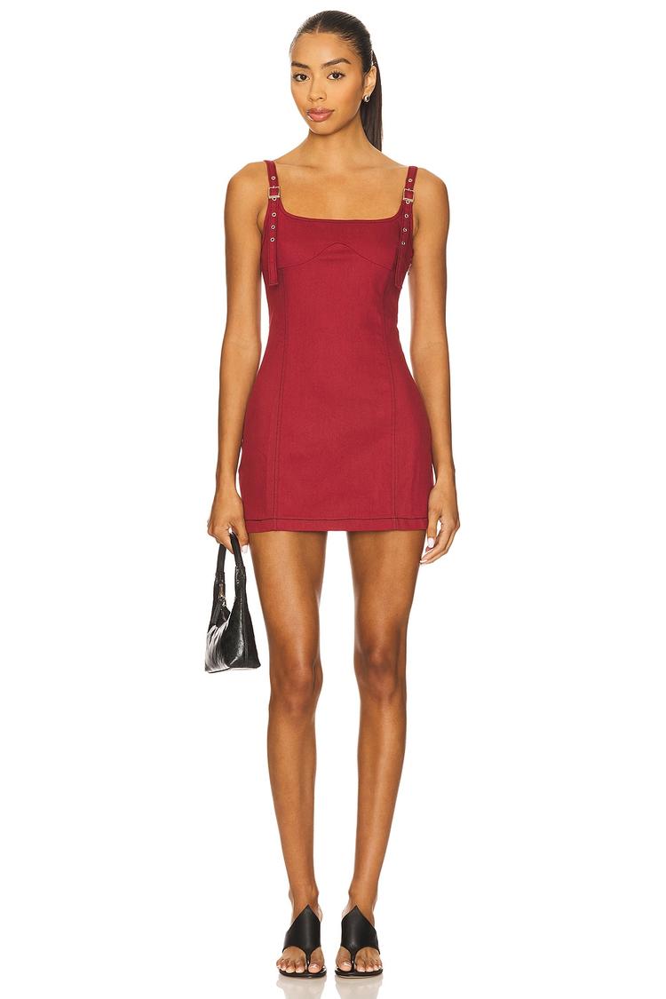 Clean lines and a striking matte red hue define this fitted mini shift dress, crafted from a midweight cotton-polyester canvas blend. Featuring a square neckline and sleeveless silhouette with adjustable shoulder straps, it offers both comfort and a flattering fit. The concealed side zipper and contrast stitching add subtle design touches, while the mini length and classic shape make it ideal for casual outings, date nights, or evening events during warmer seasons.