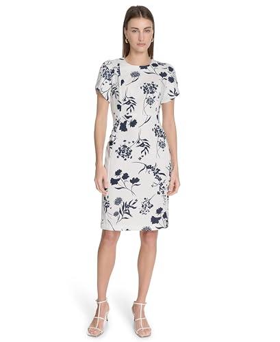 CALVIN KLEIN WOMEN'S DRESS, CREAM/INDIGO, 4