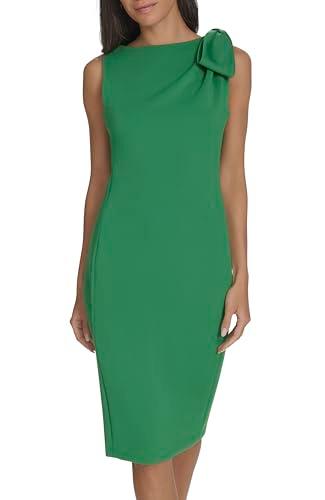 A sleek matte green sheath silhouette with a flattering fitted shape and knee-length hem offers timeless sophistication. The sleeveless design and boat neckline complement the understated bow detail at the shoulder, adding a touch of refined elegance. Crafted in smooth polyester, this dress is versatile enough for year-round wear, perfect for workwear, cocktail parties, or date nights. Its clean hemline and covered back complete the polished look, making it an essential piece for professional events and stylish evenings out.