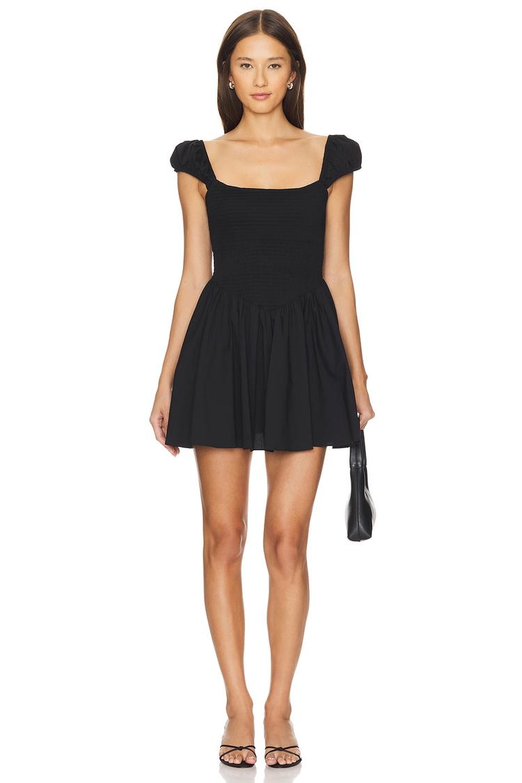 Soft cotton blend fabric with a matte black finish highlights the playful babydoll silhouette of this mini dress. Featuring a fitted smocked bodice and puffed short sleeves with delicate ruffles, it offers a charming square neckline and an open back for a flirty touch. The clean hemline enhances its youthful appeal, making it ideal for casual outings, brunch dates, or a stylish night out during spring and summer. Easy to wear with pull-on styling, this versatile dress blends classic elegance with modern cuteness effortlessly.