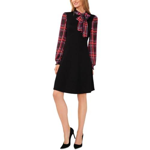 CECE WOMENS GLAMOUR MELODY PLAID KNIT SWEATERDRESS BLACK M