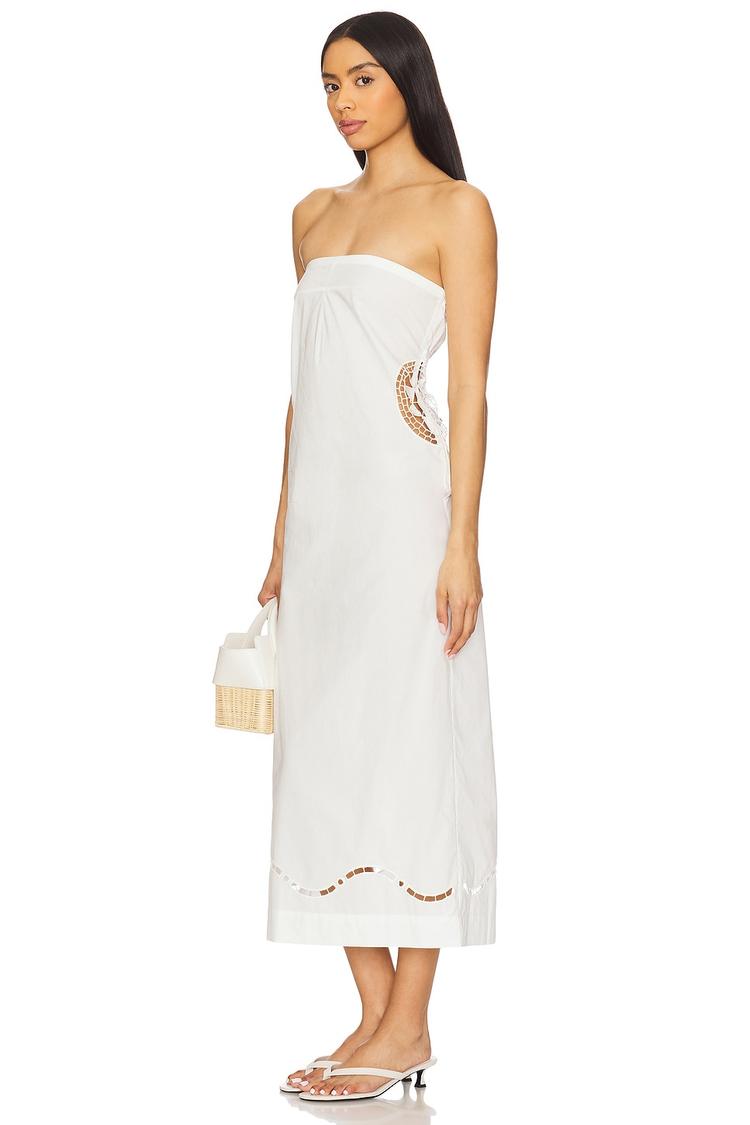 white strapless midi dress