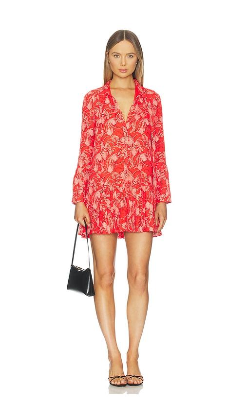 CINQ A SEPT BOTANICAL FLORAL ALINDA DRESS IN RED.