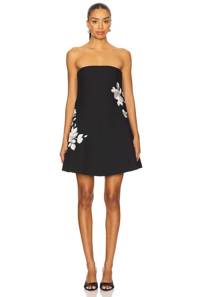 Effortlessly chic, this strapless A-Line mini dress features a matte black base with elegant white embroidered floral accents along the skirt. Crafted from midweight suiting fabric with polyester and viscose, it offers a flared silhouette that moves beautifully. The hidden back zipper ensures a sleek fit, while the clean hemline completes the look. Perfect for cocktail parties, date nights, and stylish evening outings, this elegant classic dress combines comfort with sophisticated design.