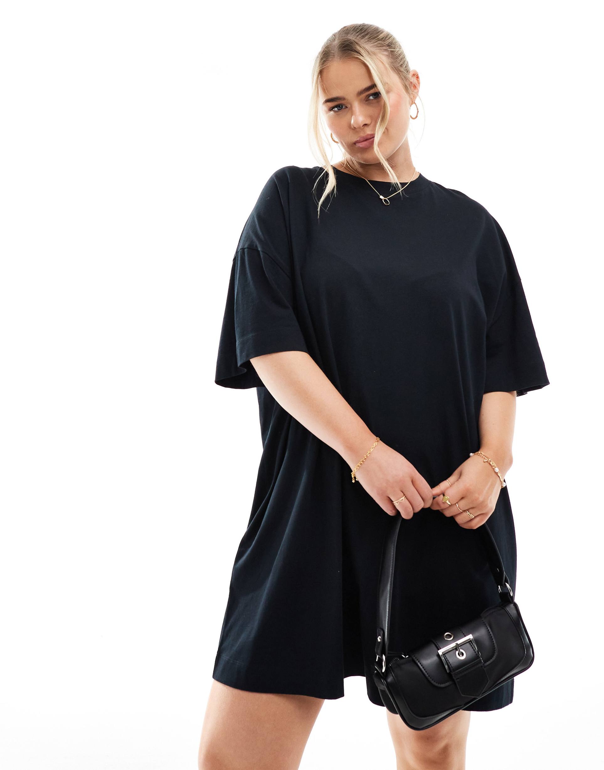 COLLUSION PLUS T-SHIRT MINI DRESS IN BLACK