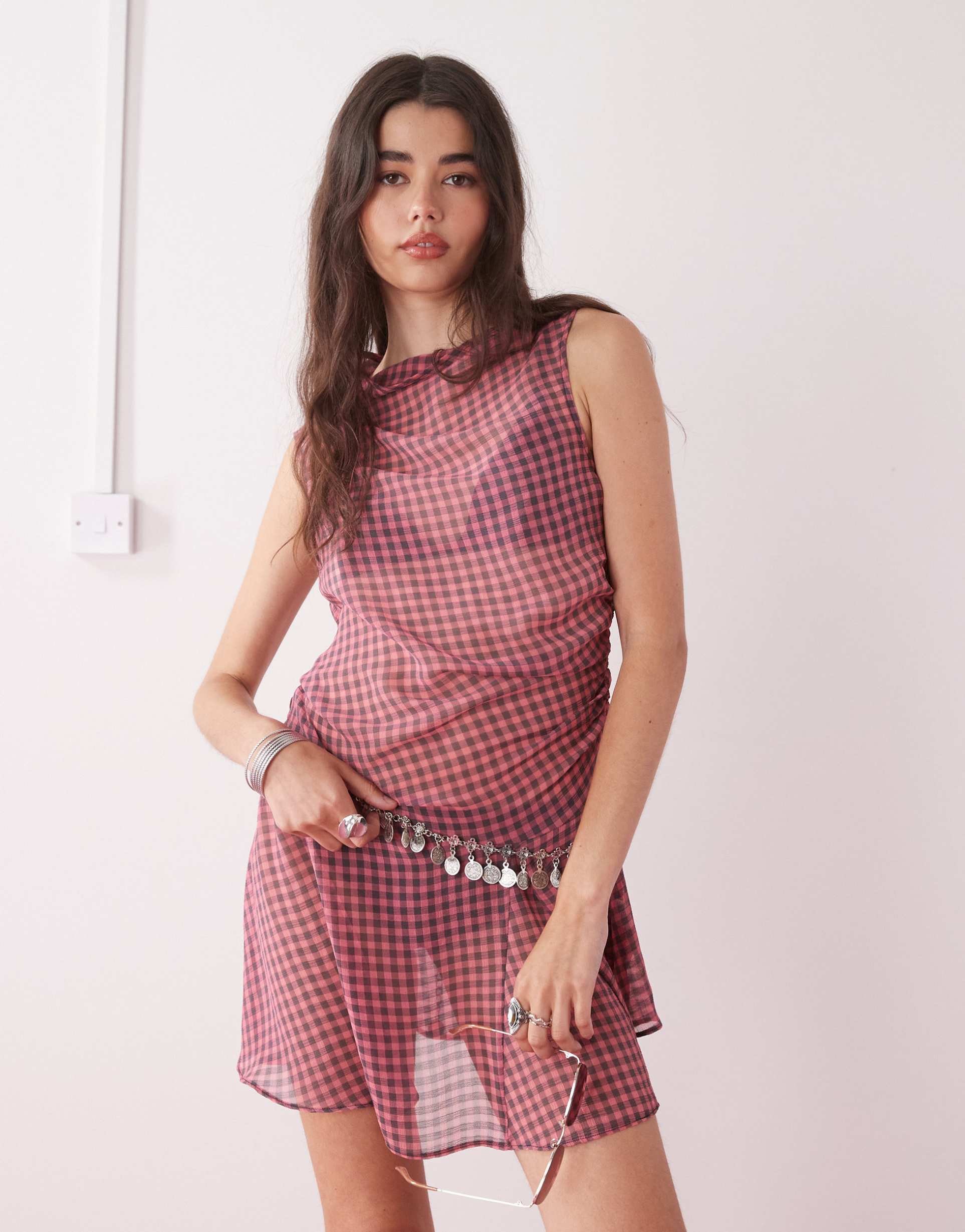sheer gingham mini dress