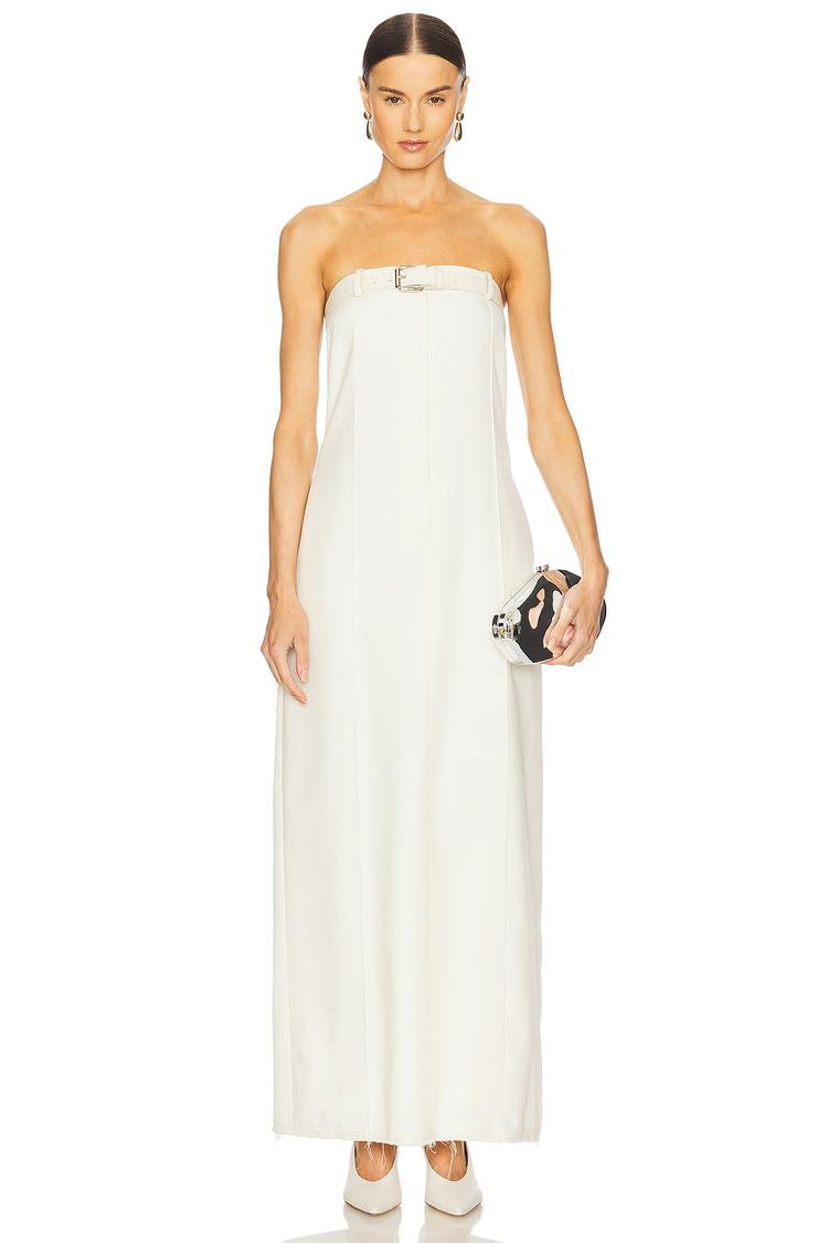 Clean lines and a sleek straight neckline define this matte white slip dress crafted from luxurious wool. The midi length and slim fit create an elegant silhouette ideal for autumn and winter occasions. A detachable matte black faux leather belt adds subtle detail and versatility, while the front zip and hook-and-eye closure ensure a polished finish. Fully lined with pintuck detailing, this minimalist piece suits cocktail parties, semi-formal events, and formal gatherings with timeless sophistication.