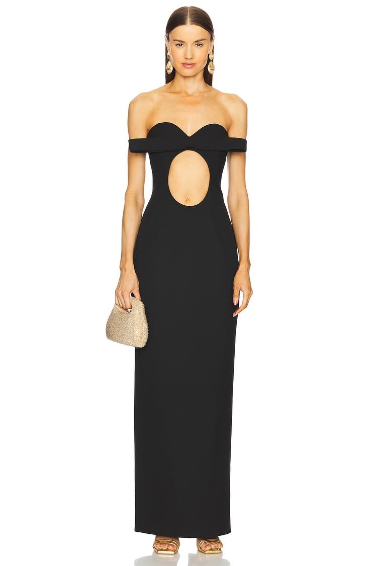 Clean lines and a sleek silhouette define this column maxi dress crafted from midweight crepe fabric. The fitted design is enhanced by a sweetheart neckline and strapless styling, while a bold front cut-out adds a modern, sexy edge. A concealed back zipper and back vent ensure ease of movement, making it a versatile choice for cocktail parties, date nights, and elegant evening occasions. Fully lined for comfort, this matte black dress perfectly balances sophistication with contemporary allure.