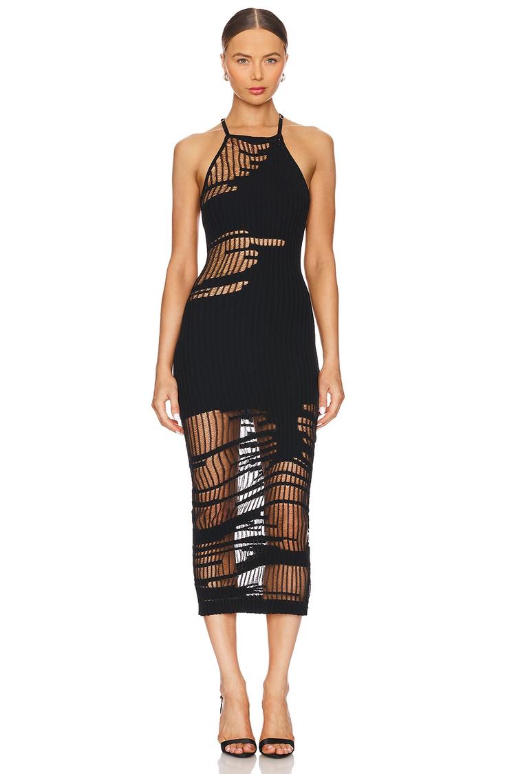 Striking sheer panels and a sleek midi hem define this matte black cover-up dress, crafted from a lightweight blend of nylon, polyester, and lyocell. The slim fit and high neckline emphasize a modern bohemian vibe, while the adjustable shoulder straps and back lace-up tie closure offer a customizable fit. Perfect for beach days, pool parties, or tropical vacations, its effortless style ensures you stand out with casual chic elegance.