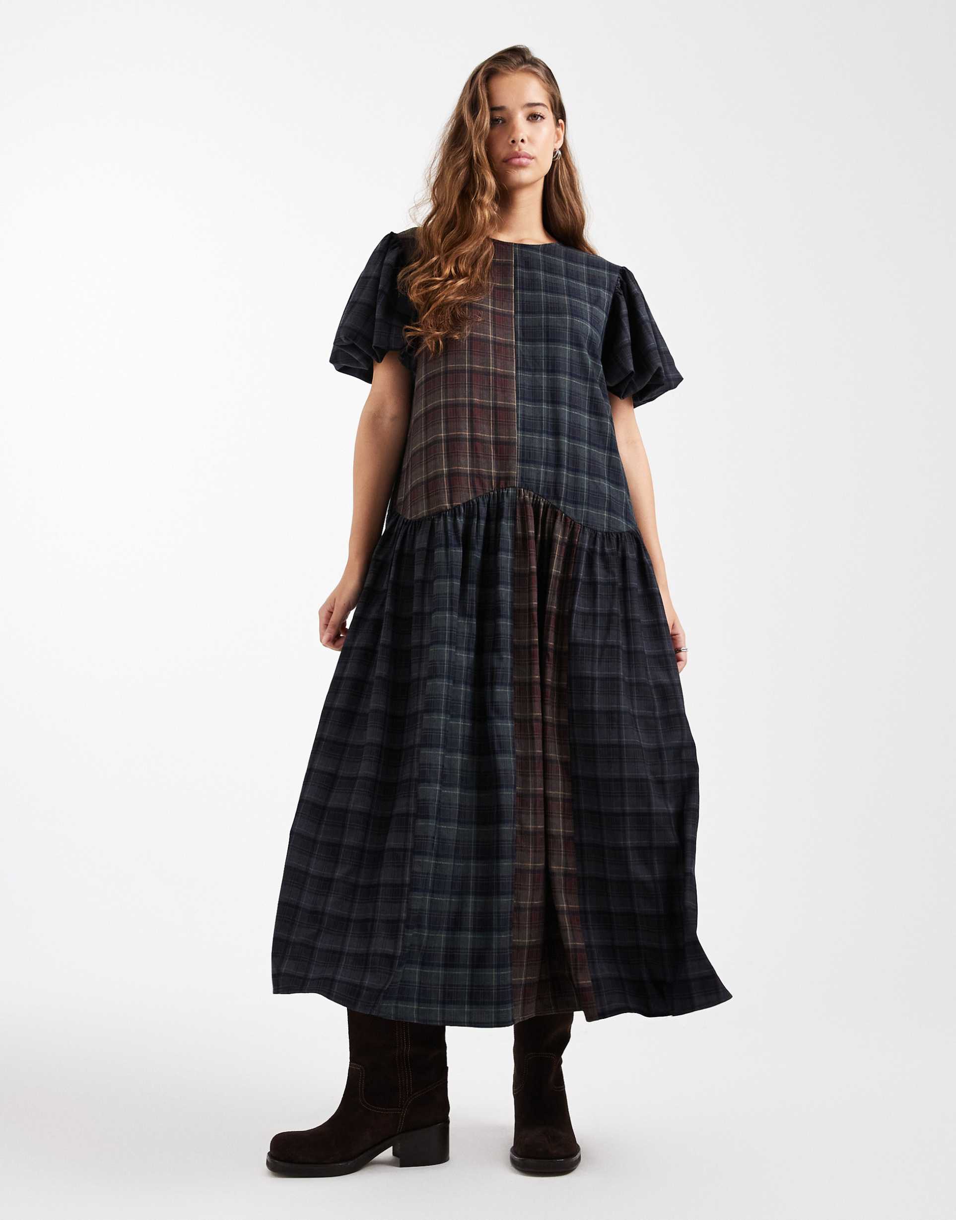 DAISY STREET THROW-ON MAXI DRESS IN MIXED CHECK