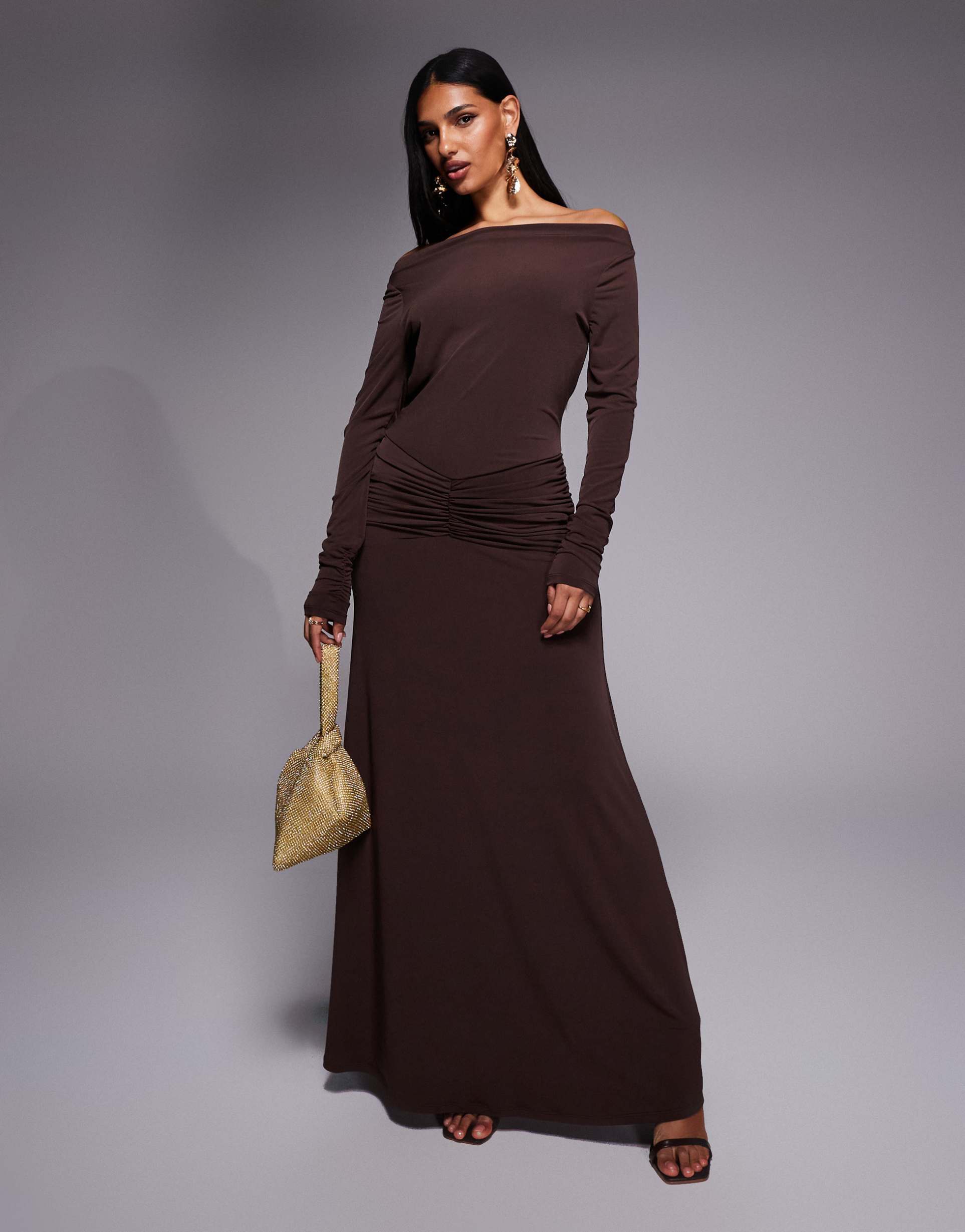 DASKA JERSEY MAXI DRESS WITH BOW BACK DETAIL IN CHOCOLATE BROWN