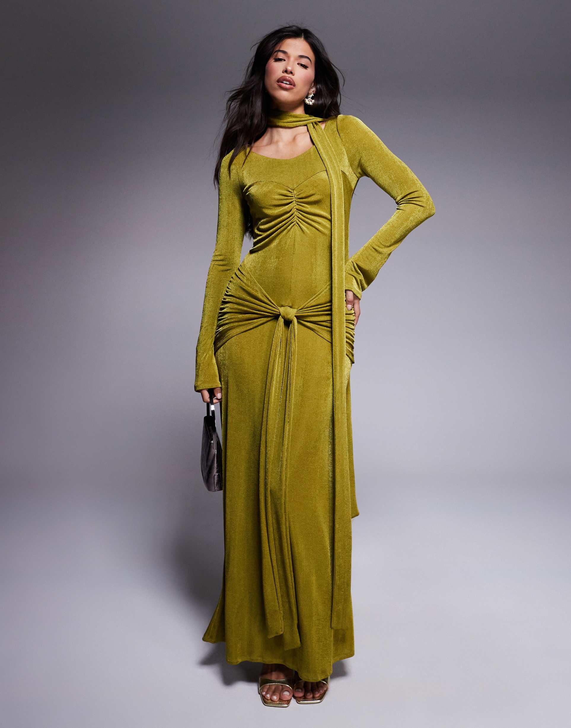 olive green evening wear